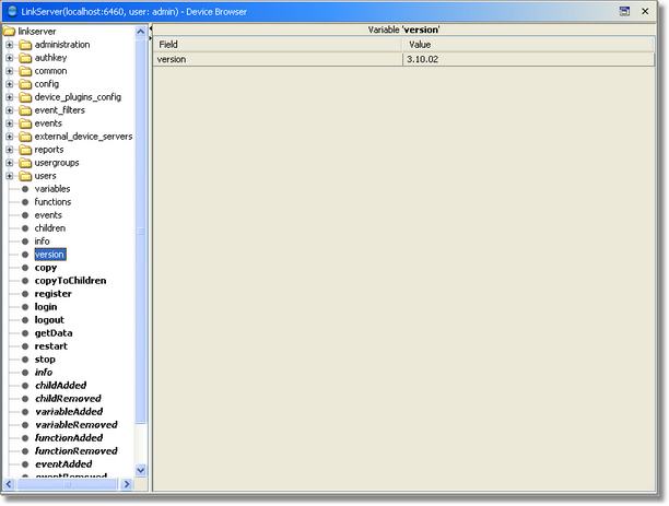 Браузер Устройств используется для навигации по контекстному дереву AggreGate Server, а также для просмотра и изменения значений для переменных контекста, работы с функциями и просмотра событий при помощи компонентов Журнала регистрации событий.