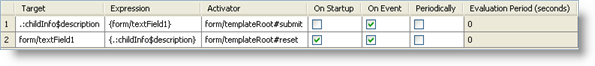 - Чьи выражения содержат ссылки на поля вывода данной функции и устанавливает их активаторы на событие действие компонента кнопки. Это заставляет их работать вместе в рамках одной сессии обработки привязок, которая начинается после щелчка мышью по кнопке (когда событие действие активно).