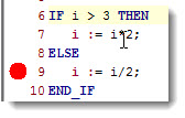 Точка не может быть установлена на строку 8, т.к. нет выражения для вычисления. При попытке установить точку на строку 8, она автоматически будет установлена на следующую по порядку строку с выражением (т.е. строка 9).