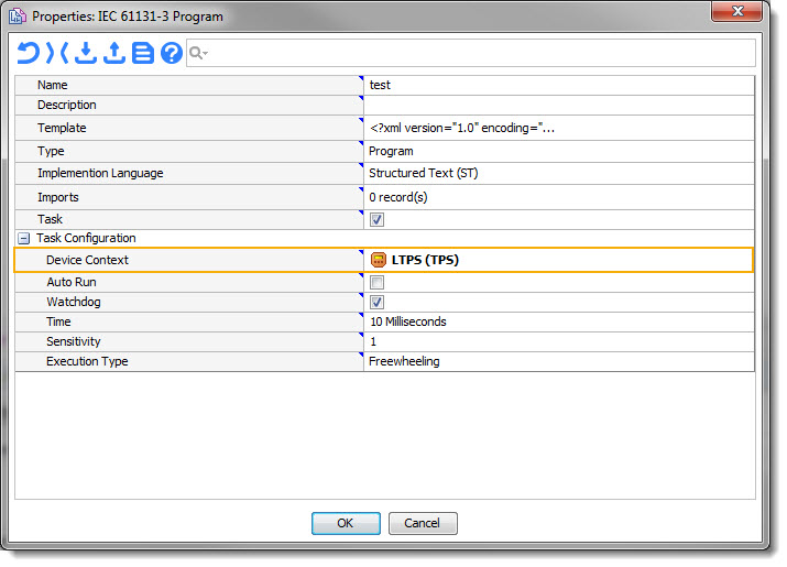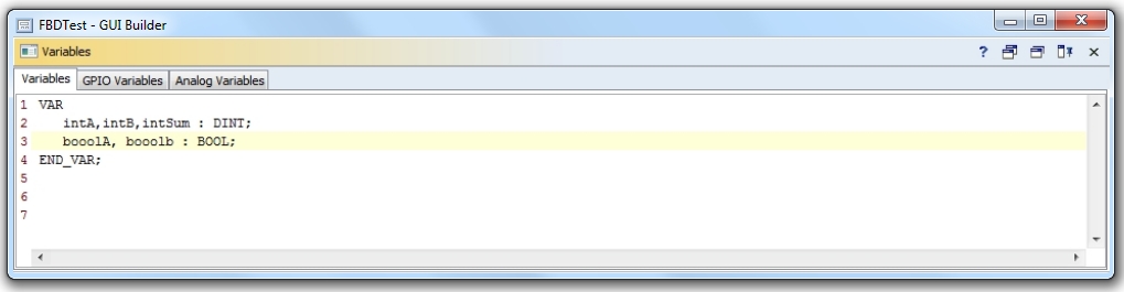 Переменные описываются на языке ST, их значения могут быть присвоены GPIO и аналоговым переменным, а также самой программе. Переменные устройства могут быть доступны, если при настройке программы был выбран контекст устройства.