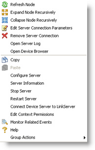 Другие опции являются специфичными для узлов. Операции, которые появляются до горизонтального разделителя, специфичны для узла текущего Системного дерева и задаются в самом AggreGate Client (они не являются действиями AggreGate Server).
