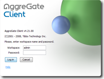 ![]() | Если Вы используете AggreGate Client в первый раз, просто введите любое имя и пароль, чтобы создать новое рабочее пространство. |