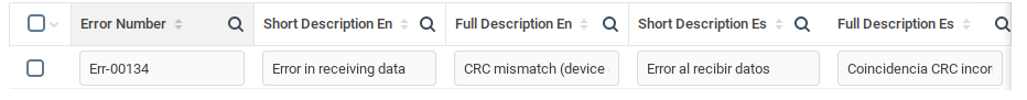 Справочник содержит поля для этого кода ошибки с кратким и полным описанием ошибки на нескольких языках.
