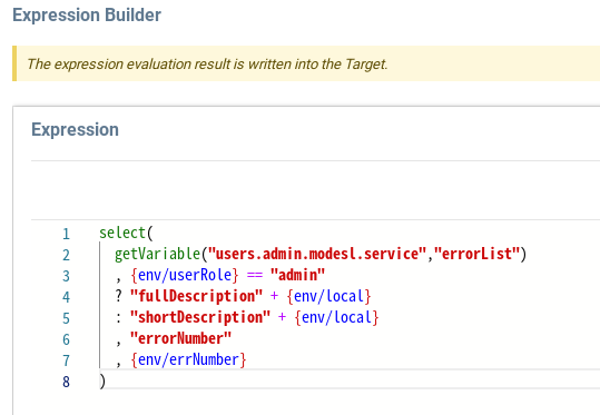 Правило обработки получает на вход код ошибки и выбирает соответствующее сообщение об ошибке из справочника в зависимости от текущей роли пользователя и используемого языка.