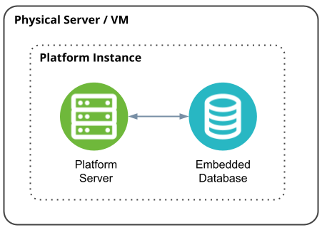 Это самая простая из возможных архитектур развертывания AggreGate. Она единственная, для которой требуется один физический сервер или виртуальная машина. Однако благодаря высокой эффективности платформы она позволяет реализовывать достаточно сложные продукты/решения с достаточно высокой нагрузкой.