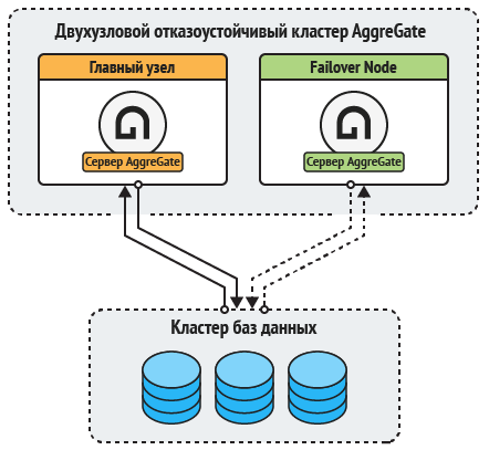 Использование единственной (сгруппированной и не сгруппированной) базы данных для всех узлов кластера AggreGate Server является абсолютным требованием.