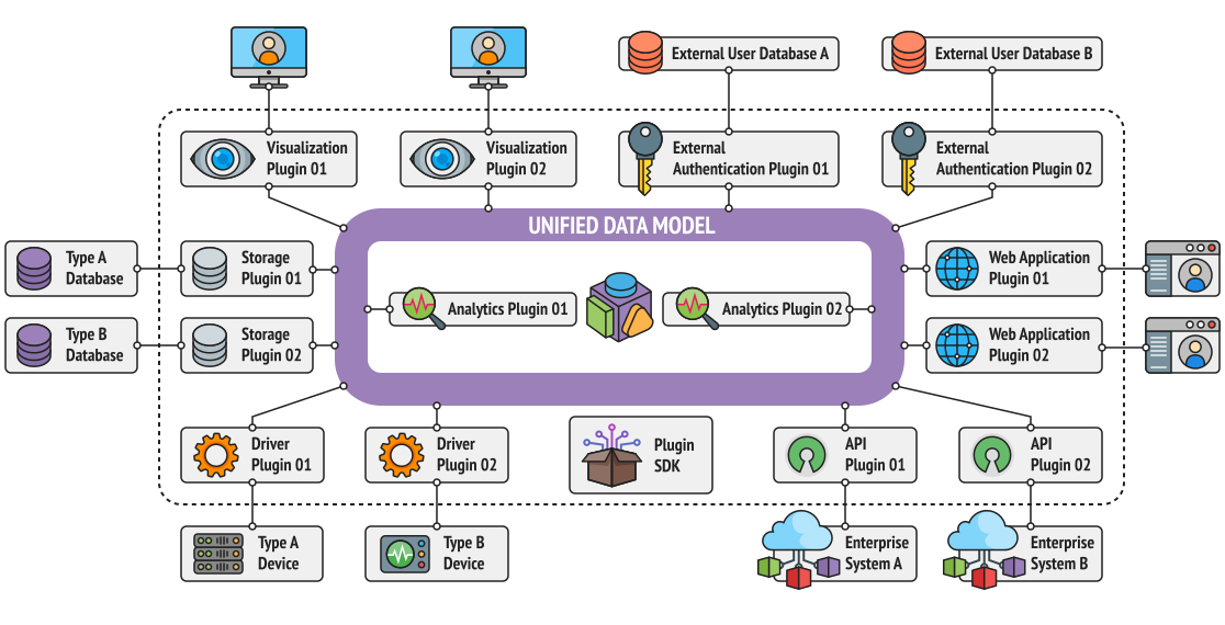 Некоторые функции AggreGate Server и AggreGate Client выполняются при помощи плагинов. AggreGate Server и AggreGate Client поддерживают несколько типов плагинов для взаимодействия с различными устройствами, добавления новых контекстов в дерево контекстов сервера, активации новых возможностей хранения данных, реализации новых схем аутентификации пользователя и т.д.