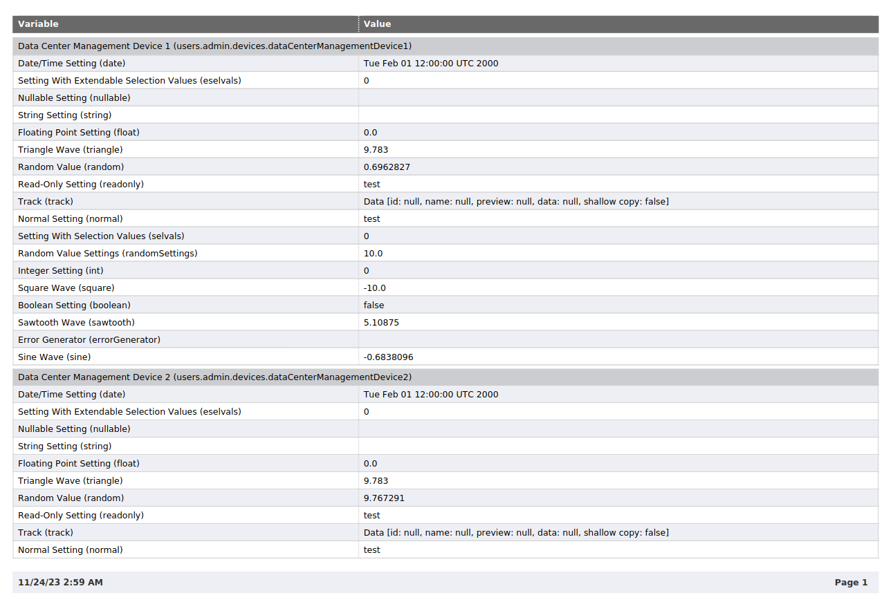 Данный отчет представляет обзор настроек всех Device, состоящих из одной ячейки (т.е. не в виде таблицы или массива):