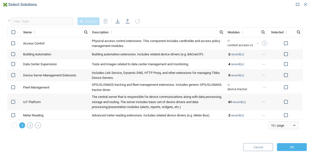 Каждая запись в таблице определяет один модуль: