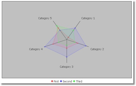 Лепестковая диаграмма с тремя сериями данных: