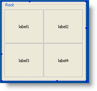 Данная компоновка представляет собой сетку из строк и столбцов, позволяя определенным компонентам занимать несколько строк и столбцов. Высота строк и ширина столбцов может быть разной. Сетку можно скрыть/показать во время редактирования шаблона виджета в GUI Builder, однако, ее не видно во время работы виджета. Видимы только компоненты.