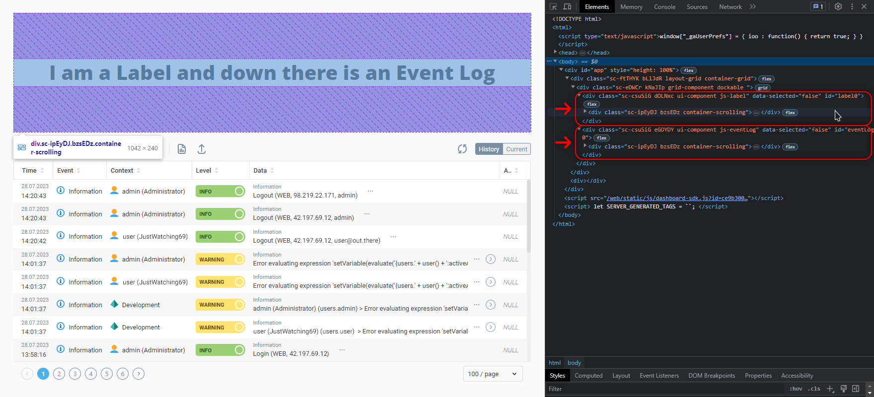 js-{componentName}содержит динамическую часть с именем компонента, написанным в “верблюжьей” нотации (например,js-systemTree).<div>с классомcontainer-scrollingотвечает за обслуживание свойства Выход за пределы контента в Свойствах контейнера.