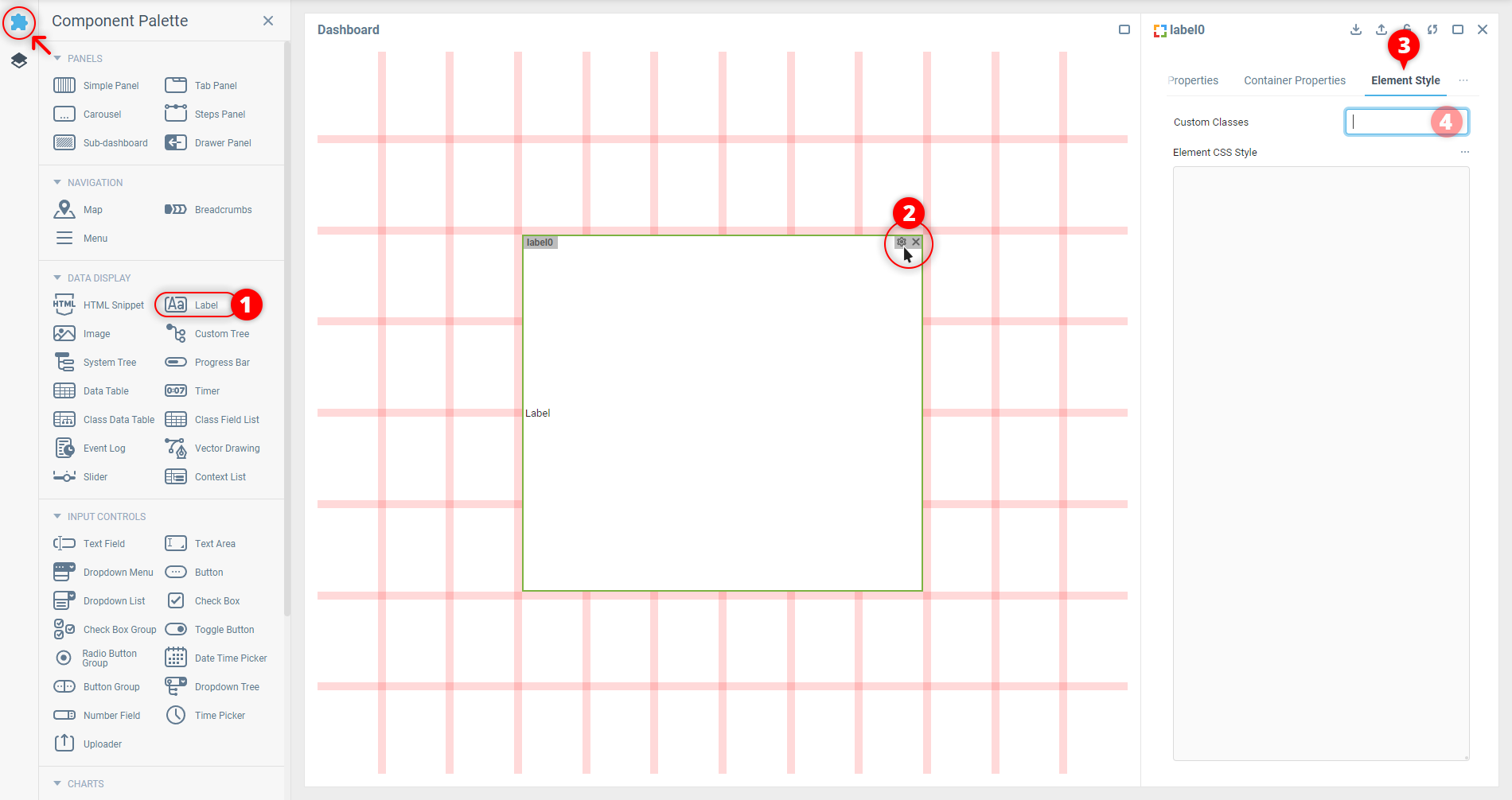 1. В Конструкторе UI добавьте компонент на панель управления, щелкнув его в Палитре компонентов или перетащив на макет.
