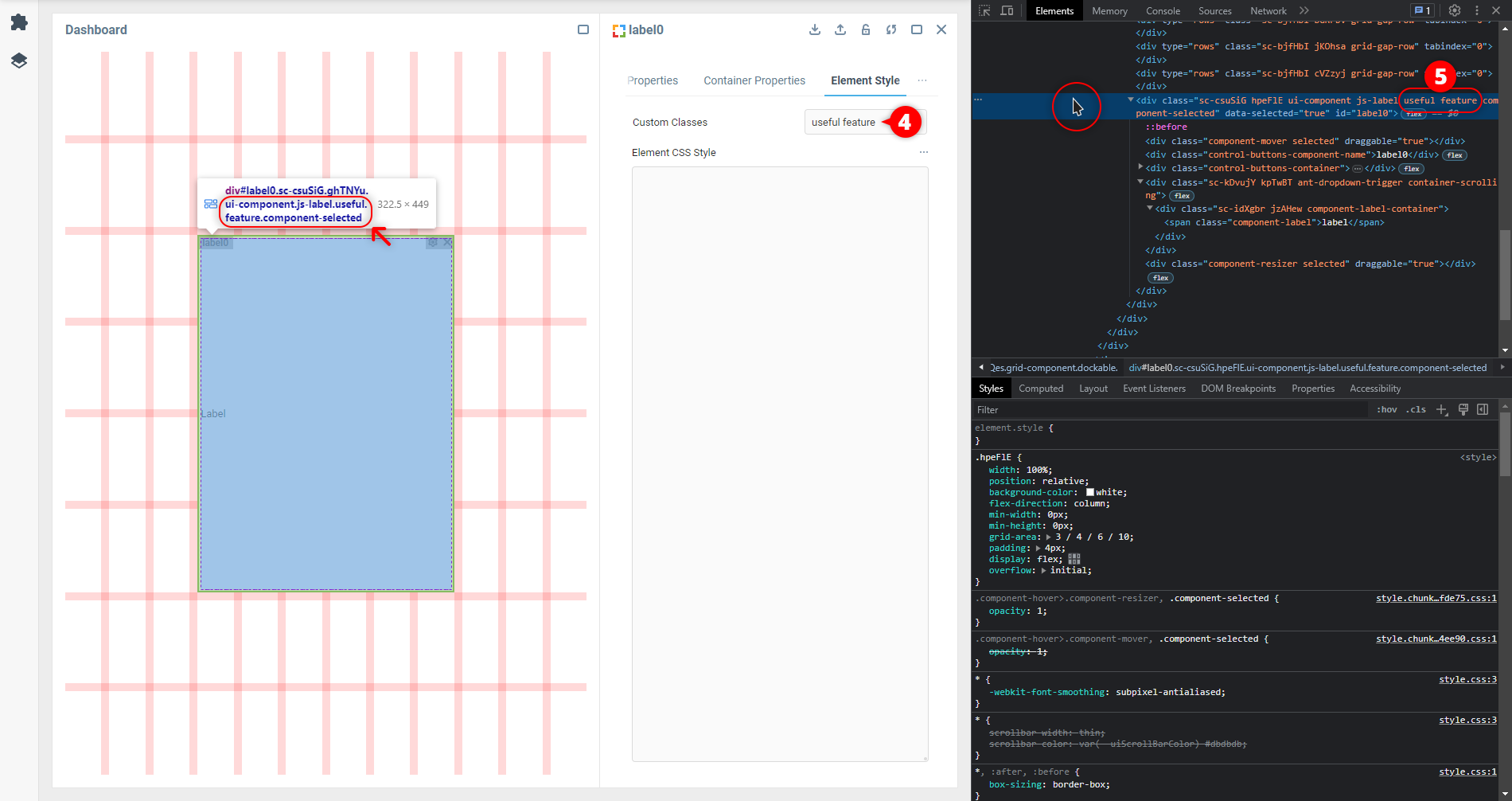 Это свойство редко используется при добавлении стилей непосредственно в редакторе свойств компонента. Поскольку оно не требует учета HTML за пределами компонента, нет необходимости использовать специальный класс, чтобы нацелить его на что-то внутри. Но он приходит на помощь, когда вы нацеливаетесь на компонент извне - скажем, из свойств Корневой панели панели инструментов.