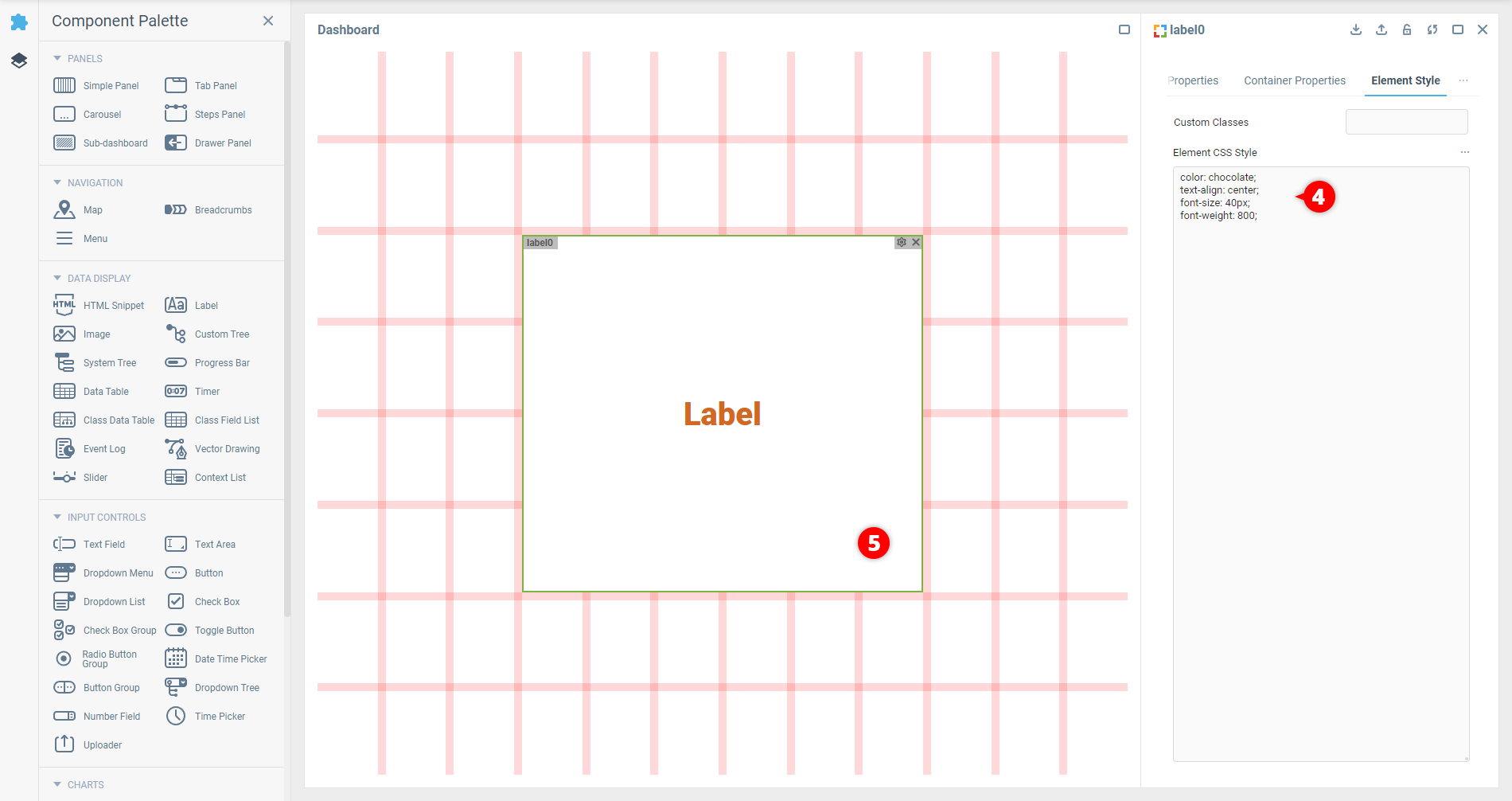 Группа свойствElement Стиль относится к самому компоненту. Для любого компонента она позволяет объявить Пользовательские классы компонента и добавить пользовательский CSS в свойство Element CSS Стиль. Некоторые компоненты, например Панели, имеют больше свойств в этой группе, связанных с их спецификой.