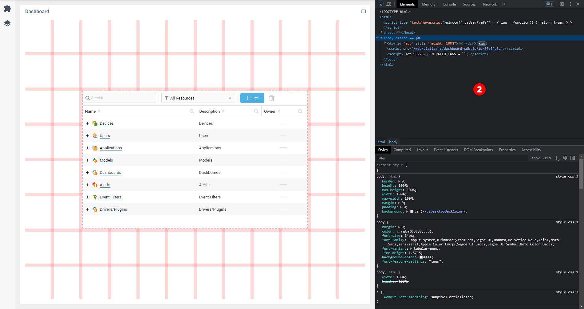 Поскольку большинство AggreGate компонентов веб-интерфейса представляют собой нечто большее, чем просто пара HTML-элементов, неизбежно, что в какой-то момент вы столкнетесь с ситуацией, когда списка простых CSS-свойств будет недостаточно, чтобы охватить все части компонента для стилизации. В таких случаях необходимо использовать CSS-селекторы, оборачивающие свойства, чтобы указать, какую именно часть компонента вы хотите стилизовать.