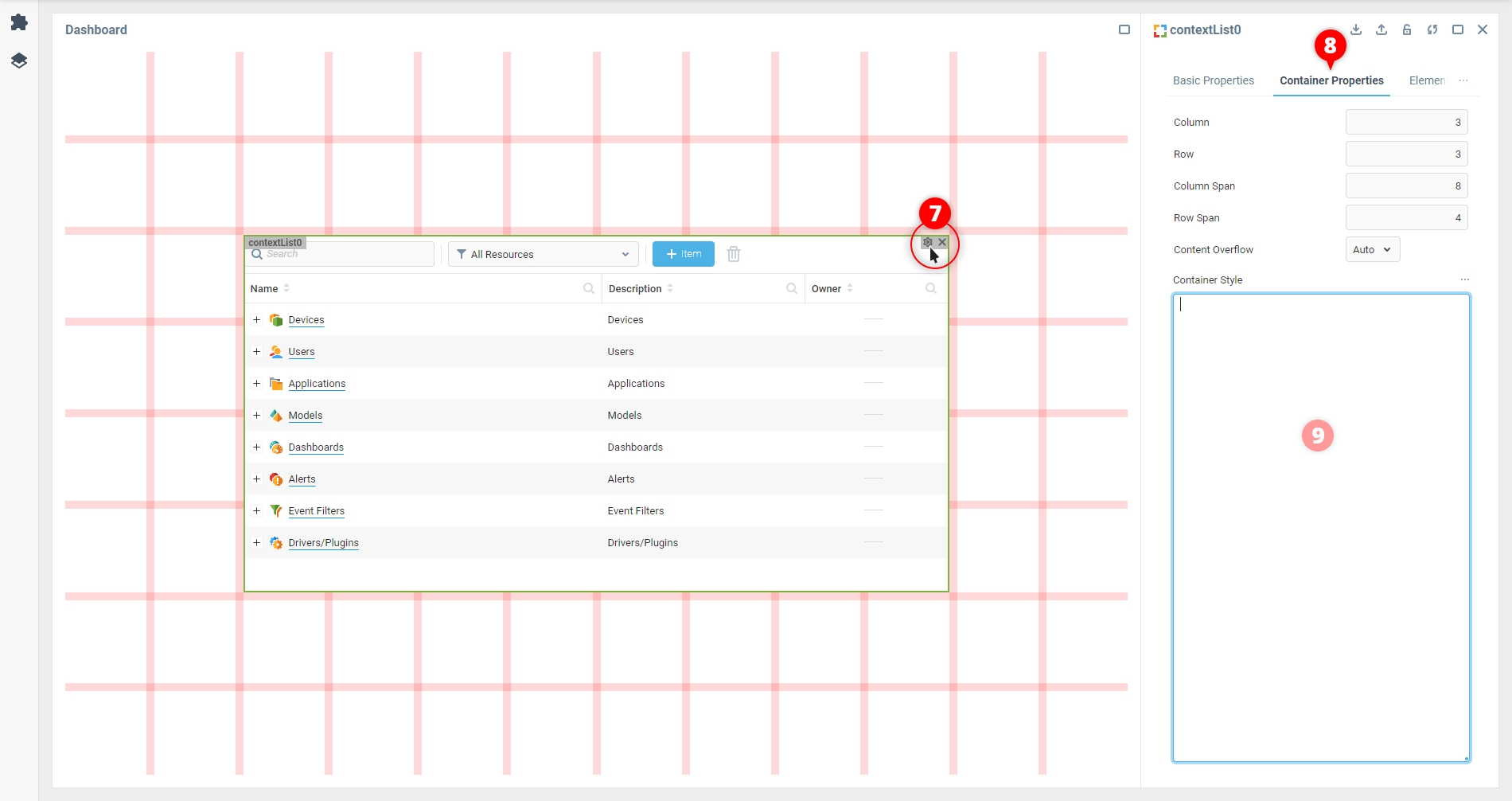 1. В Конструкторе UI добавьте компонент Контекст в инструментальную панель, щелкнув по нему в Палитре компонентов или перетащив его на макет.