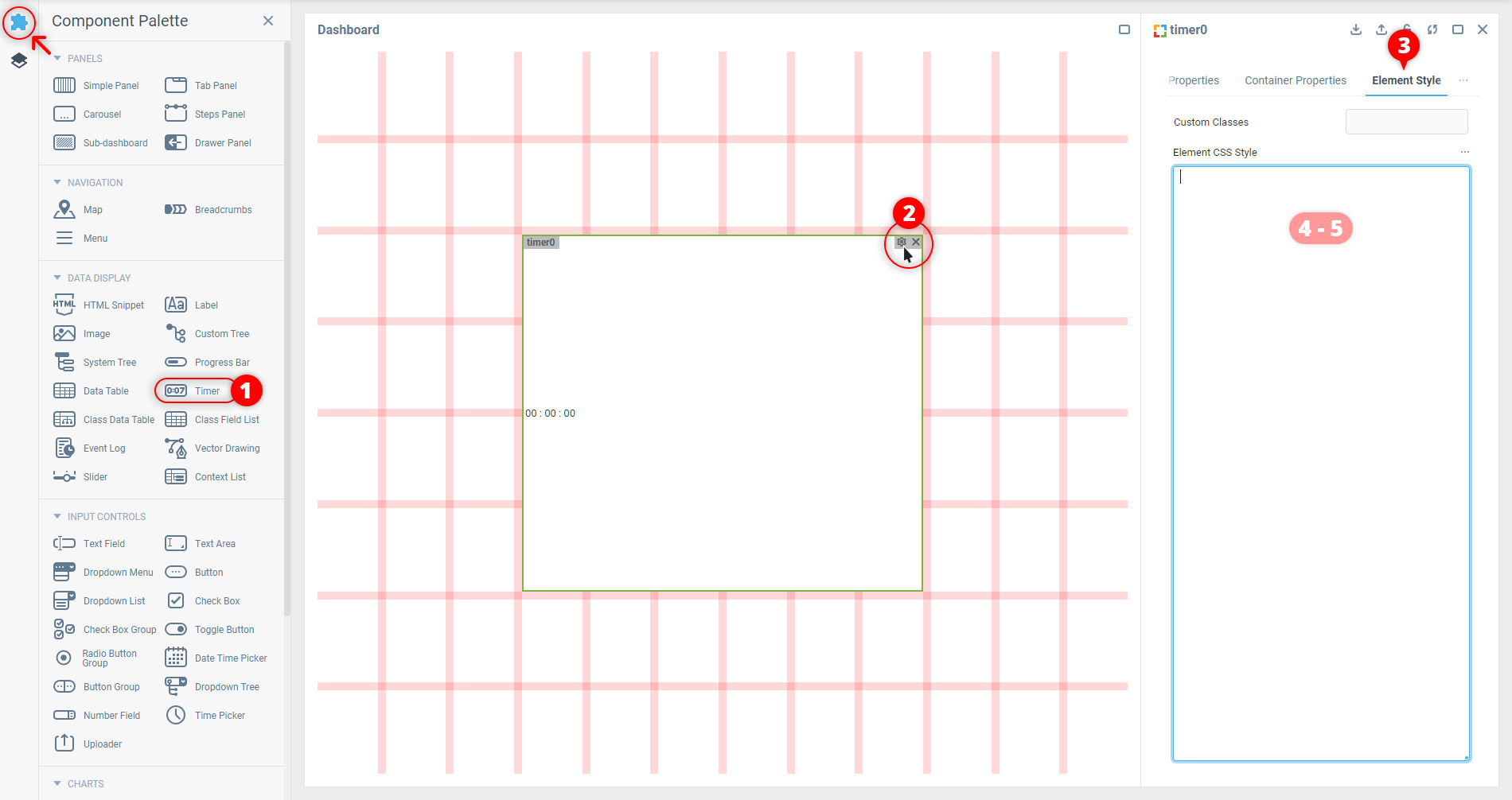 1. В UI Builder добавьте компонент на инструментальную панель, щелкнув его в Палитре компонентов или перетащив на макет.