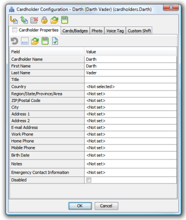 Одна ключевая деталь, которую нельзя указать в этом диалоге - действительный номер карты, с сотрудник регистрируется в системе! После добавления каждого сотрудника Вам необходимо отредактировать его свойства и указать номер его карты.