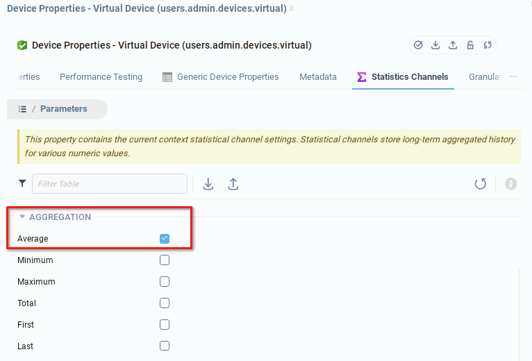 Также желательно отключить все типы Агрегации, кроме Среднего. Это позволит сохранить место в статистической базе данных.
