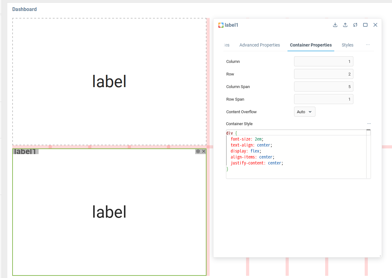 Чтобы сделать значение подписи более заметным, можно обновить свойство Стиль контейнера в группе свойств Свойства контейнера следующими данными: