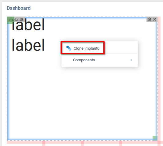 После того как первый контейнер Имплант будет настроен, щелкните правой кнопкой мыши на контейнере, чтобы открыть контекстное меню, и выберите пункт Клонировать implant0