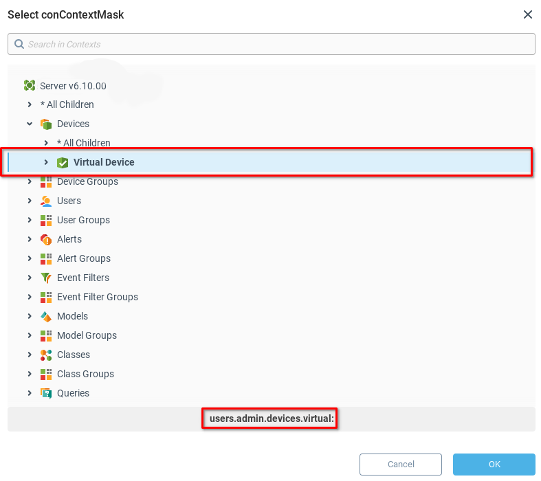 Путь к устройству или Маска контекста устройства: Текущий контекстный путь, ведущий к конкретному устройству, или контекстная маска, ведущая к ряду устройств, для которых мы хотим извлечь события. В нашем случае мы хотим получить события со всех устройств, поэтому используем маску контекста