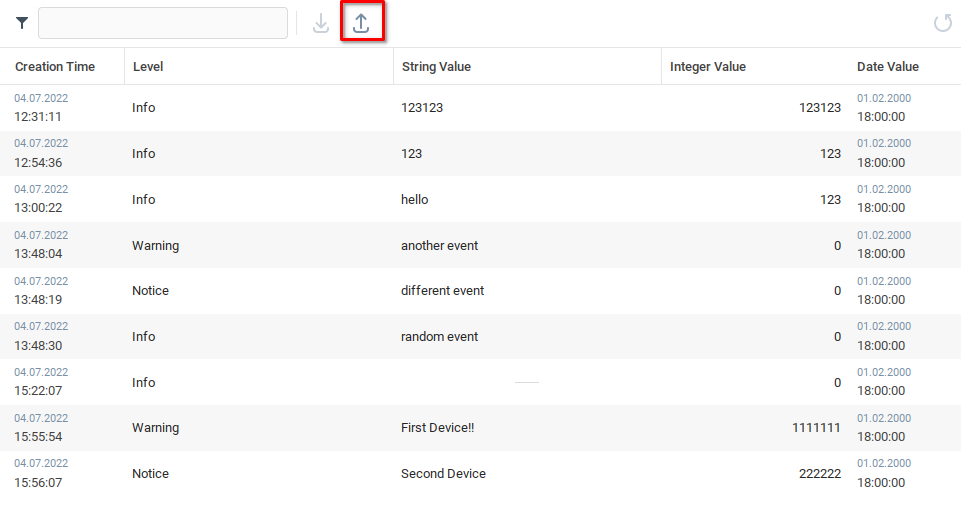 В нашем случае мы видим, что создается нужная таблица данных, включающая события, которые мы сгенерировали на первом и втором устройстве.