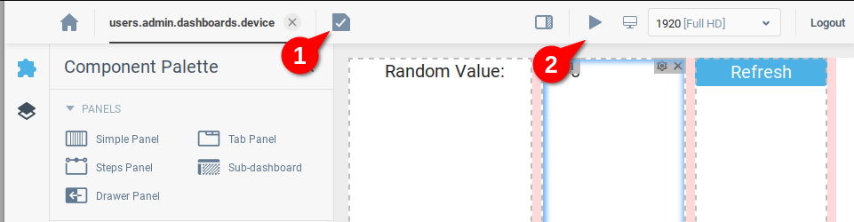 Мы сохраняем и запускаем нашу панель, используя кнопку для обновления переменной Random из значения нашего виртуального устройства: