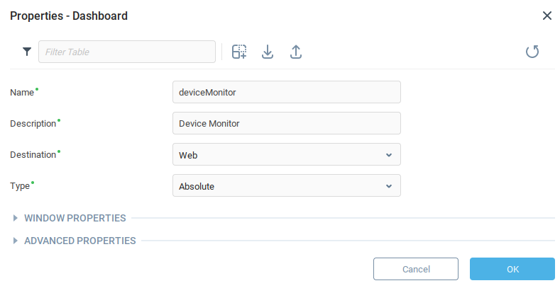 Эта операция откроет окно Свойства - Инструментальная панель , в котором мы дадим имя нашему устройству. После нажатия кнопки OK новая приборная панель появится в дереве системы в разделе Инструментальные панели.