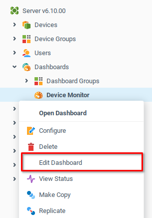 Запустите приборную панель, открыв контекстное меню новой приборной панели (
